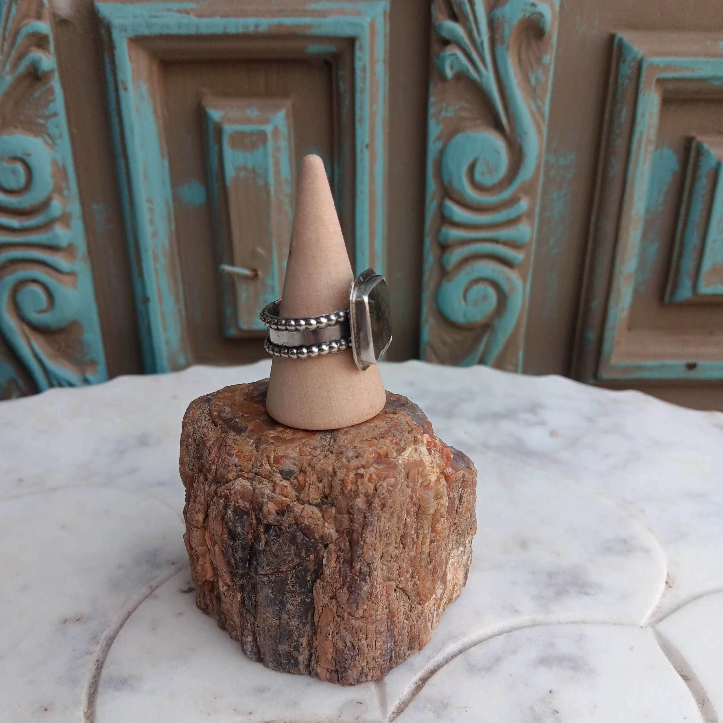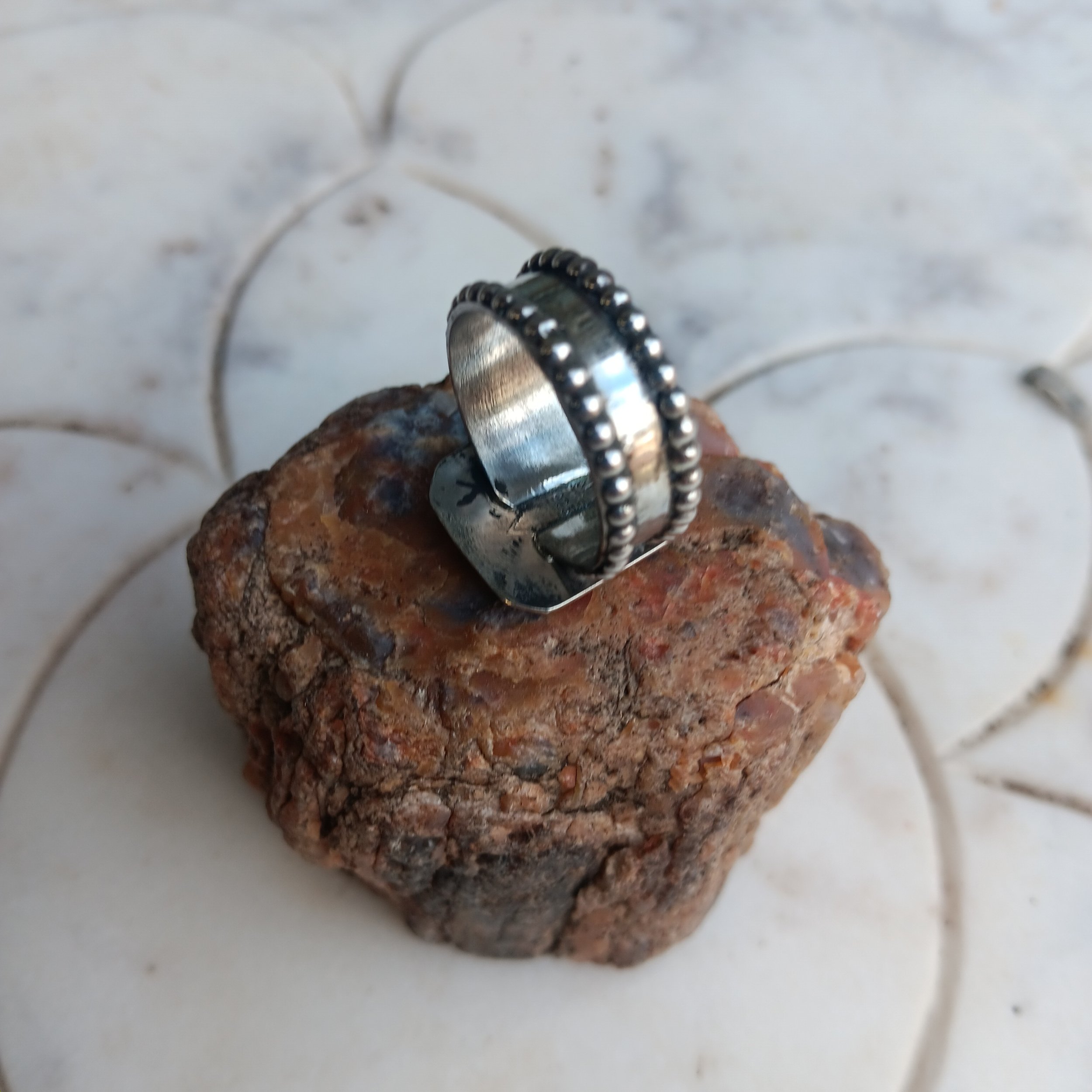 Solid sterling silver band and bezel, handcrafted and polished to a soft sheen